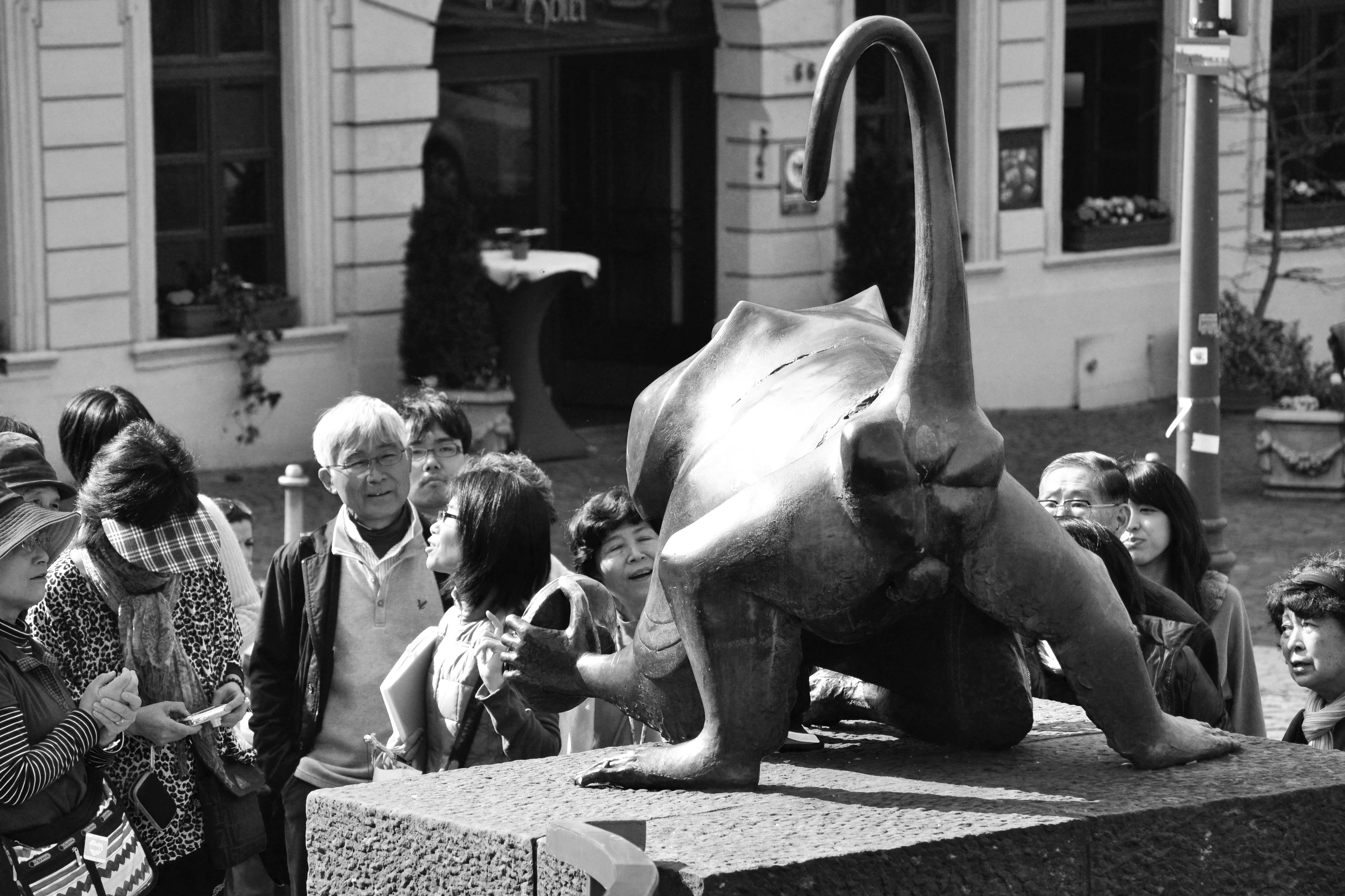 The monkey holds a mirror with a poem in his hand which reads as follows: “Why are you looking at me? Haven’t you seen the monkey in Heidelberg? Look around and you will probably see more monkeys like me!” The monkey is Heidelberg’s most photographed object.
