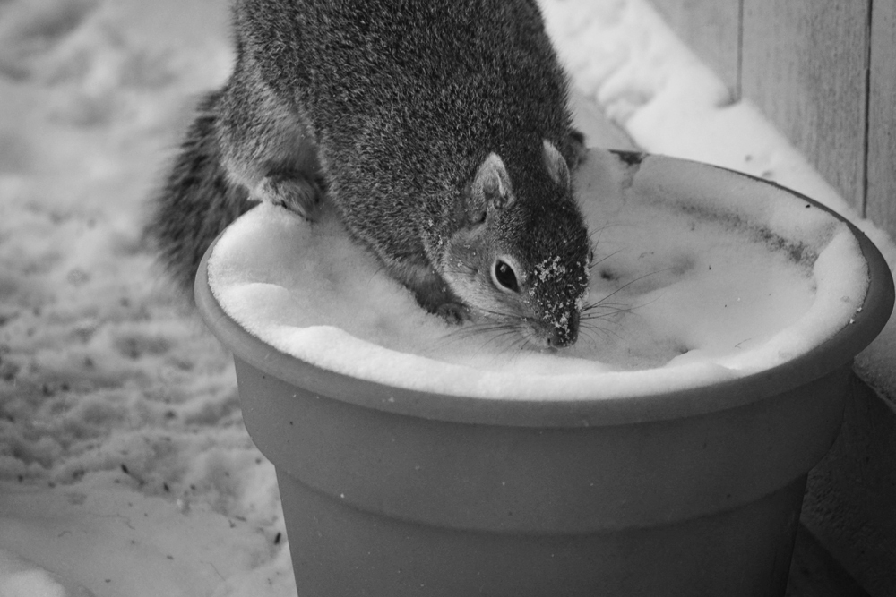 When I looked up from my computer I saw a squirrel outside in the garden. I had to be fast and there was no time to change to a shorter lens, so this turned out to be just a snapshot.
