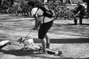 Skateboarder Walking His Dog